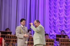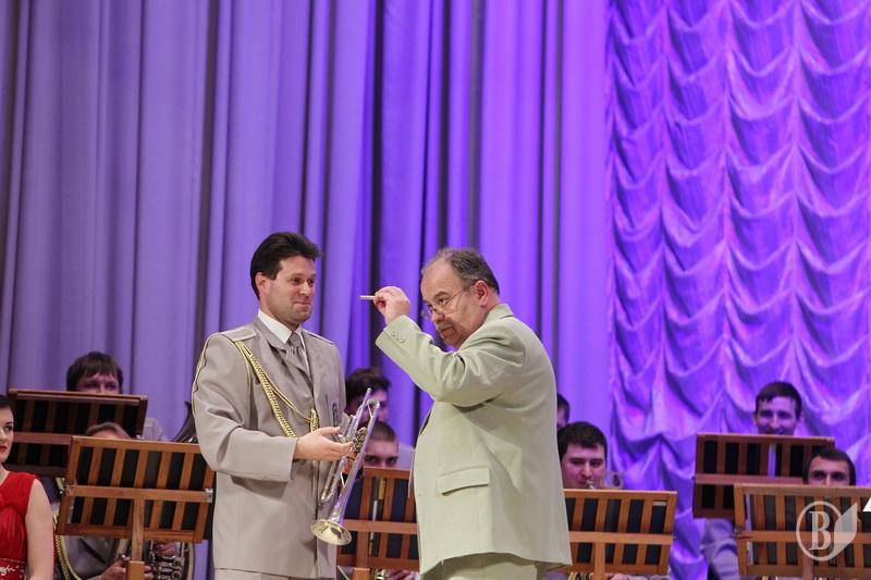 Духовой оркестр областного филармонического центра фестивалей и концертных программ в рамках подготовки к 70-у филармоническому сезону предложил веселую концертную программу, шоу вместе с ведущими артистами центра.