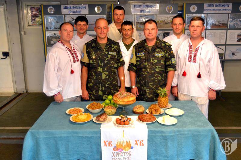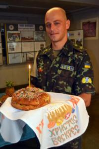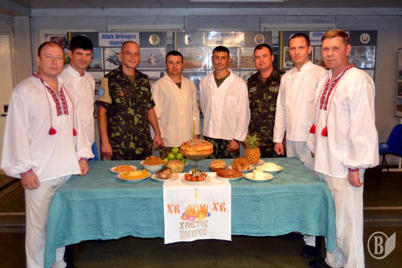 - К Пасхе готовились неделю, - сказал начальник продовольственной службы вертолетного отряда капитан Валентин Рачинский. - Повара практиковались в выпекания символа Праздника - Пасхи, придумывали ее декорацию и красили яйца. Также на Пасху всех миротворцев ожидает улучшеное меню, будем угощать фруктами, сладостями и печеным мясом.