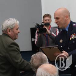 От имени Совета областной ветеранской организации Ассоциации ветеранов МВД Украины, ее Президиума и себя лично поздравил стражей порядка с Днем Победы Павел Скнар.