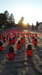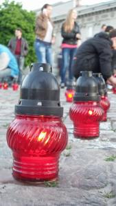 Начались мероприятия выступлением музыкальной группы «Crisp», а закончились флеш-мобом «Помню» с зажжением лампадок на Красной площади.