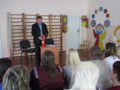 З педагогічним складом та технічним персоналом закладу, майстром виробничого навчання Мирютою Юрієм Миколайовичем, було проведено заняття по відпрацюванню дій персоналу у разі виникнення надзвичайних ситуацій. Слухачі були дуже уважні та вдячні, адже на них покладається відповідальність за цілеспрямоване формування у дітей ціннісного ставлення до власного здоров’я, адекватних реакцій на різноманітні чинники ризику для життя, а від правильних, злагоджених та вчасних дій залежить не тільки власне життя, а і життя малечі.
