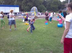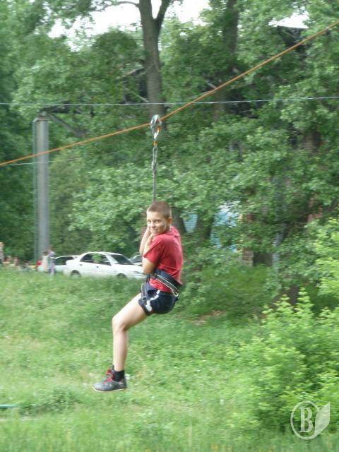 Свято для малят було і в літньому театрі, і на відкритій сцені Центрального парку культури і відпочинку. Усі охочі могли перелетіти на канаті ставок - профі-екстремали вправноі безпечно натягнули над ним трос для спуску.