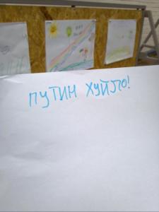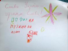 Щоправда, війна на Сході триває і незаплямований дитячий розум надавав перевагу зовсім іншому політику - Путіну. Відверті послання останньому можна було побачити на малюнках, які діти малювали для наших військових - оборонців Сходу держави.