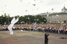 В Чернигове на Красной площади во время празднования Всемирного Дня защиты детей, которое состоялось благодаря народному депутату Владиславу Атрошенку, юные черниговцы установили новый рекорд Украины – 156 голубей одновременно взлетели в небо, что и зафиксировала Елена Коваленко - эксперт национальных реестров рекордов.