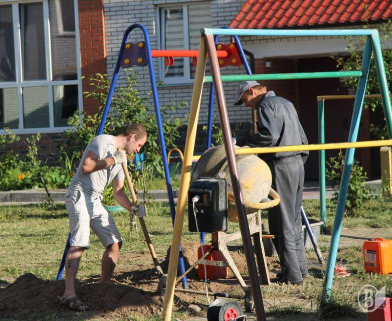 В этом молодом дворе родители с тремя специалистами оборудовали игровую площадку.