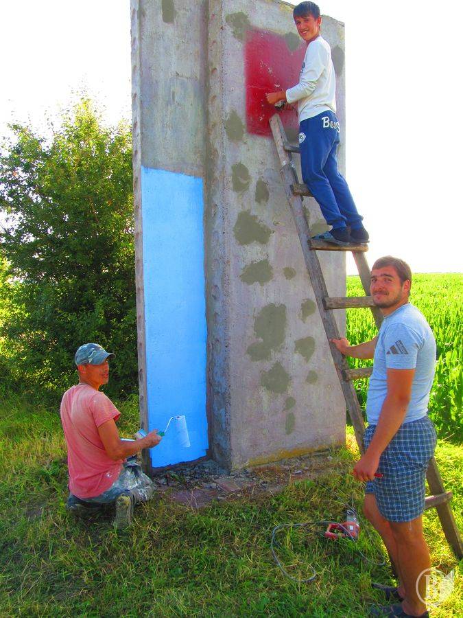 «На то, чтобы превратить бетонные стеллы в яркую визитку - проинформировал девятиклассник Лосиновской ООШ Назар - пошло 5 мешков клея, около 15 литров краски, грунтовки и многих других материалов».