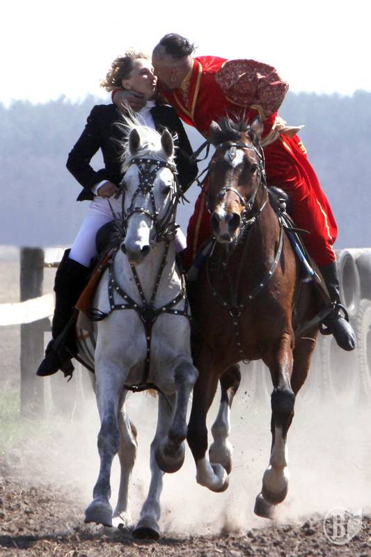 Культ коня существовал у украинцев. В частности, всадниками были языческий бог грома и молнии Перун и христианский святой Юрий-Георгий. В легенде о Вещем Олеге, конь как священное существо мог принести и успех, и смерть. Иногда он сопровождал своего хозяина в потусторонний мир. В казацкий культуре особенное отношение к коню воспето в украинском фольклоре. Во многих казацких песнях, думах, переводах конь является братом и боевым товарищем казака.