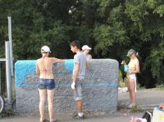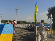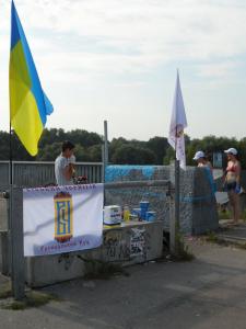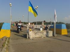 В воскресенье, 3 августа в 8.30 УКРОПЫ (Украинские Патриоты) - активисты общественного движения «Свободный Чернигов» и «Молодежи Демократического Альянса» начали раскрашивать в государственные цвета пешеходный мост через р. Десна.