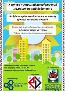 У Чернігові теж вже почали з’являтися «патріотичні будинки», створені за ініціативою мешканців будинку. Тому Демократичний Альянс вирішив для активних будинків провести конкурс та продовжити перетворювати сірі будинки на шедеври мистецтва. Патріотичний малюнок отримати зможуть найактивніші будинки, які визначатимуться шляхом голосування в рамках конкурсу.