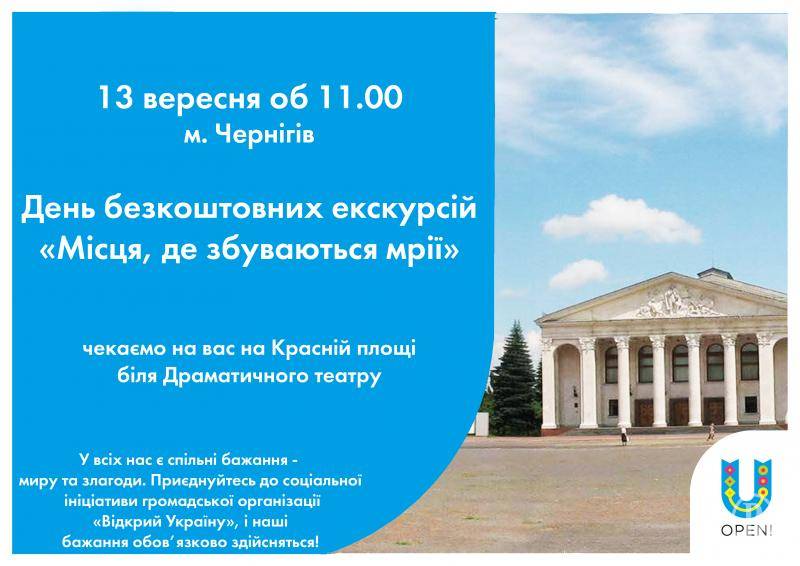 В рамках проекта «Украинский викенд», 13 сентября в 11-00 во многих городах Украины одновременно начнется «День бесплатных экскурсий» с волшебной тематикой - «Места, которые выполняют желание».