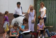 Зараз їх увагу привернула вулиця Коцюбинського з маленькими будиночками, на яких існує дерев’яне різьблення.