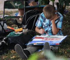 Інколи поправляють щось на їх акварелях, пропонують уважніше придивитися. Серед юних художників, є такі, що спочатку довго сидять і дивляться, а потім швидко закінчують роботи.