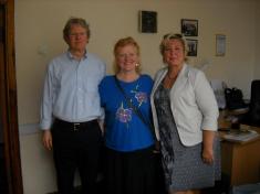 Джоан Волш: - Мне показалось, что эти студенты все же больше мотивированы, более старательны, но они обычно и взрослее, чем школьники. Относительно преподавателей – они действительно компетентные и настроены на достижение успеха в деле преподавания иностранных языков. Кроме Чернигова мы побывали в школе городка Седнев - она нас поразила: очень красивая, комфортная, просторная. Нас встретил директор, провел экскурсию, и мы также имели возможность осмотреть этот город. Там очень интересные достопримечательности архитектуры, живописные пейзажи.