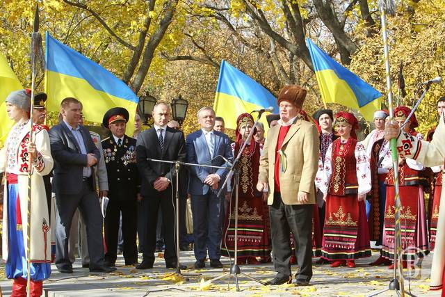 Приветствуя собравшихся с Днем защитника Украины, и. о. главы областной государственной администрации Сергей Журман отметил, что ныне страна переживает нелегкие времена – аннексия Крыма, война на востоке, где каждый день погибают наши бойцы.