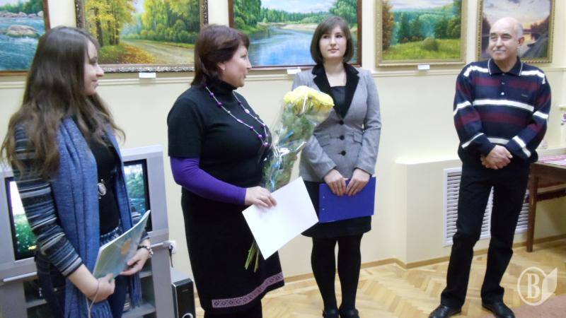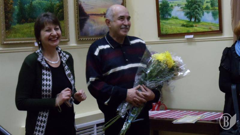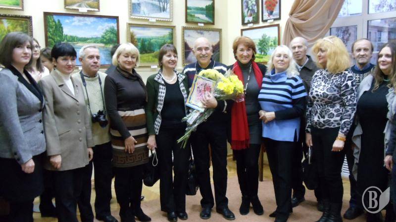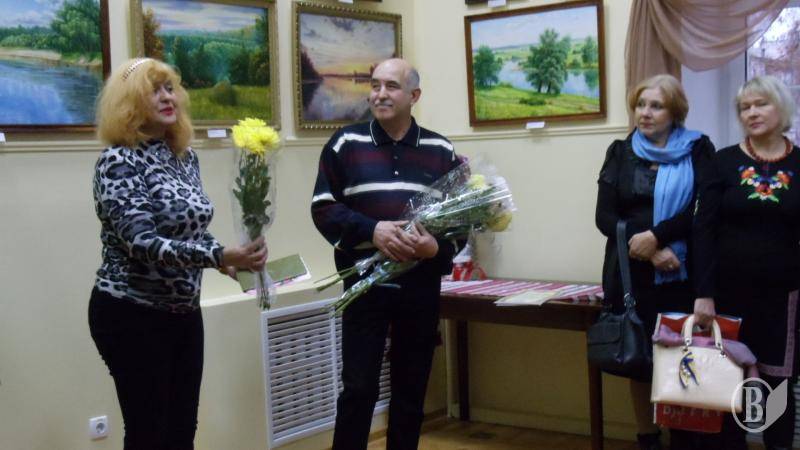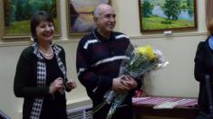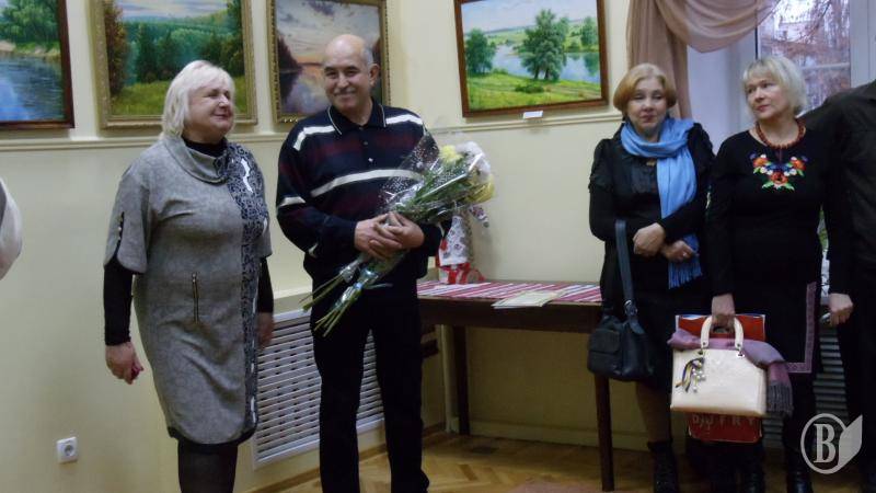 Художника поздравили: директор Черниговского областного учебно-методического центра культуры и искусств Надежда Завалина, которая отметила высокое мастерство автора работ и вручила грамоту за весомый вклад в развитие культуры Черниговщины, ведущий методист Алина Плотно подарила новый каталог «Деснянской палитры», коллеги: Людмила Бешун и Василий Мигрин.