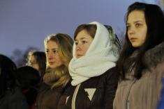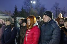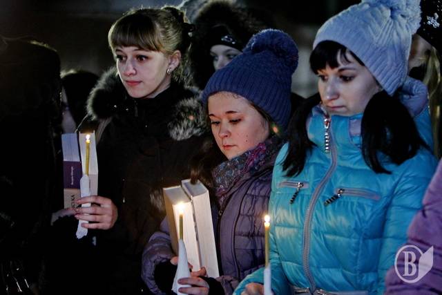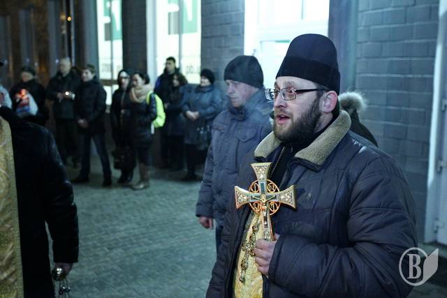 Довкола стояла тиша, потріскував вогонь у запалених лампадок та свічках, які тримають учасники акції. Священнослужителі правили молебень…