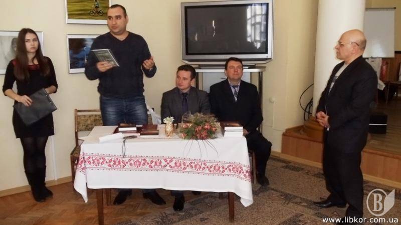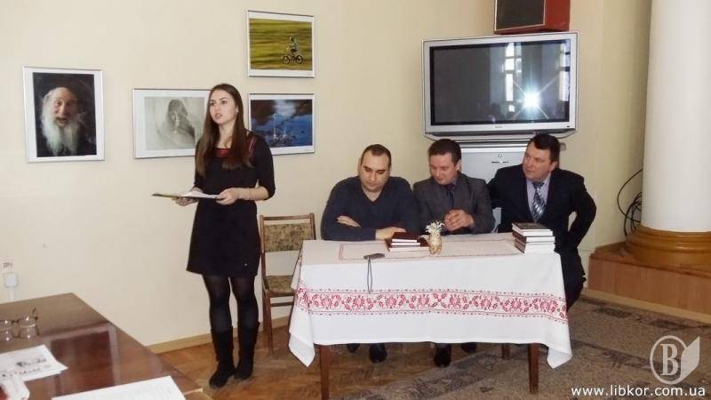 На встрече присутствовали модератор презентационного мероприятия, библиотекарь отдела краеведения Виктория Солоникова, кандидат исторических наук, заведующий кафедры этнологии и краеведческо-туристической работы Института истории, этнологии и правоведения имени А. М. Лазаревского ЧНПУ им. Т. Г. Шевченко Юрий Русанов.