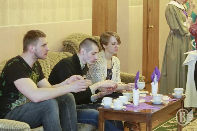 Так они еще не отмечали. Это совсем новый проект. Вы же по-видимому знаете, что Молодежка тем и отличается своими необычными проектами. На праздник пожаловали самые искренние друзья театра. Это непросто был чай – это было театрализованное представление как нужно пить чай. В зале стояли празднично убраные столы, за которыми угощали гостей красивые девушки. За каждым столом можно было попить разнообразного чая. Розовий стол предлагал черный, зеленый с яблоками и с клубниками. За фиолетовым столиком вы имели возможность попробовать изысканные чаи с бергамотом и апельсином. За салатовым столом -- зеленый чай из жасмином и каркаде.
