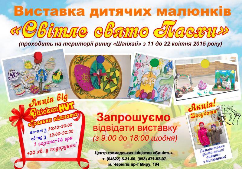 В Чернігові з 11 квітня до 22 квітня триває виставка дитячих малюнків «Світле свято Пасхи».