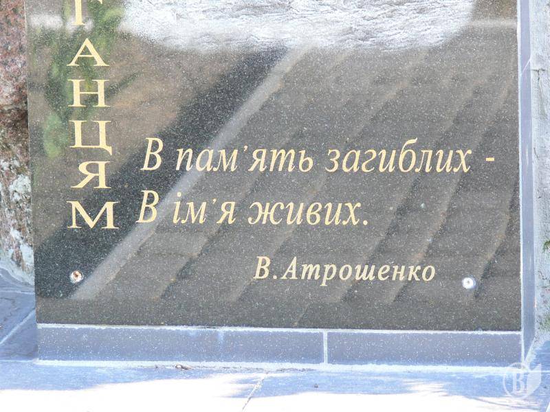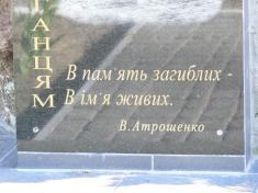 Уявіть собі військове містечко. У кутку немов переораного трактором плацу каменюка з викарбуваними рядками "В пам'ять загиблих - В ім'я живих. В. Атрошенко".