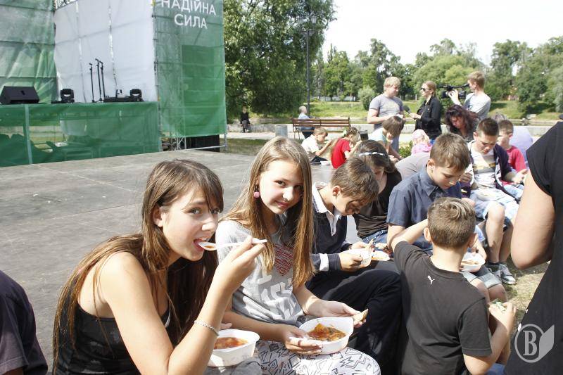 В Чернигове в центре города у набережной возле ЗАГСа впервые провели фестиваль борща. Организаторы – Геннадий Корбан и Украинское объединение патриотов обещали накормить 850 человек! Именно на такое количество порций было заготовлено продуктов.