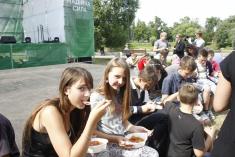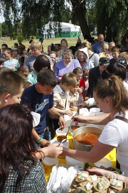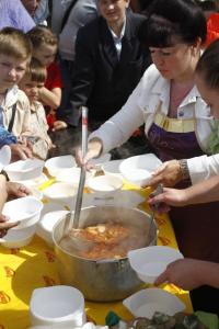 Было множество веселых и забавных конкурсов, танцы и, конечно же, сюрпризы для отличившихся. Кстати, для гостей варили два варианта борща – постный и с мясом. Без фирменной приправы – укропа не обошлось. Горожанам угощение оказалось по вкусу: