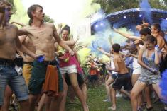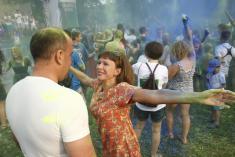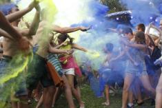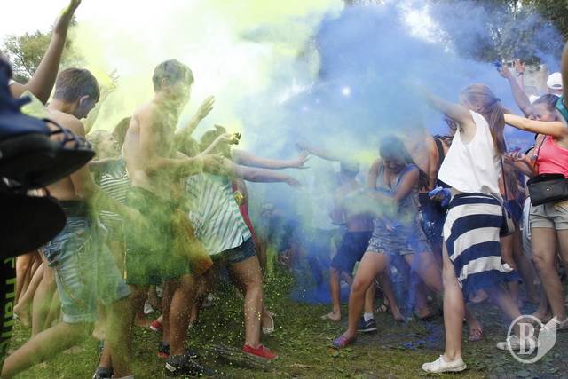 В воздухе сразу зависла тучка сине-желтого цвета. Перемазанные краской, в пятнах, участники феста, тем не менее, выглядели счастливыми и сразу же побежали к реке – отмываться.