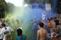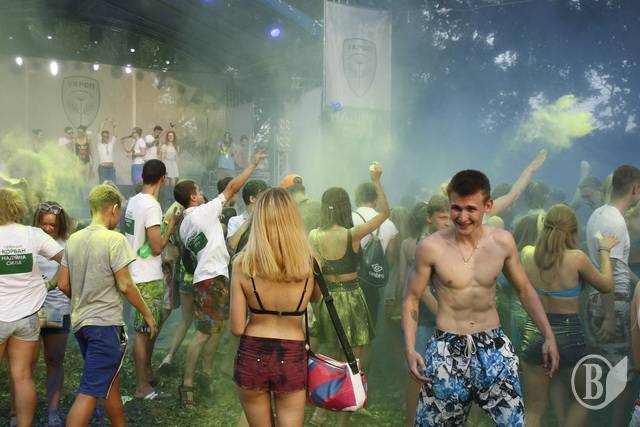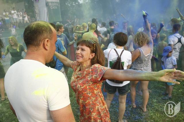 Другая экзотика, которая впервые прошла в Чернигове, – это индийский праздник красок – Холли. Черниговцы внесли одну поправку: в Индии этот праздник отмечают весной, когда у них изобилуют все краски природы, а у нас – летом, потому что именно тогда наша природа на пике своей красоты и плодоношения. Смысл праздника – перекидываться мешочками с сухими порошковыми красками. Около «Золотого берега» это делали две команды – с синими и желтыми цветами. Ведущие отметили: краски абсолютно безвредны – сделанные из картофельного крахмала и легко отстираются.