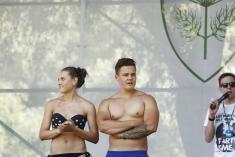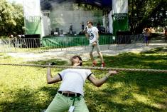 Главным образом, изюминкой мероприятия стала качественная сцена, где звучала динамическая музыка. Горожанам это понравилось, причем настолько, что даже днем в полуденную жару около сцены люди постоянно танцевали и двигались. Кроме веселых диджеев, ведущих, публику развлекали джамперы, ходулисти, а еще – красивые танцовщицы-пиджейки. Рядом со сценой расположился спортивный городок, где проходили соревнования по пляжному волейболу, воркауту, силовым видам спорта. А еще соревновались в перетягивании каната. И не только ради спортивного интереса. В целом, в ближайшее время десять черниговцев точно будут паковать чемоданы – потому что именно столько путевок в Карпаты разыграли за один выходной.