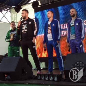 После этого был дан старт концертной программе. Жители нашего зеленого исторического города смогли не только услышать искрометные шутки, репризы, песни и стихи на актуальные темы, но и посмотреть эксклюзивные видеоклипы, которые до Чернигова больше не транслировались ни в одном городе Украины.