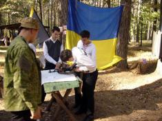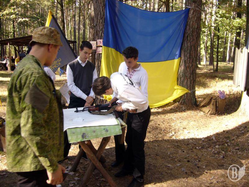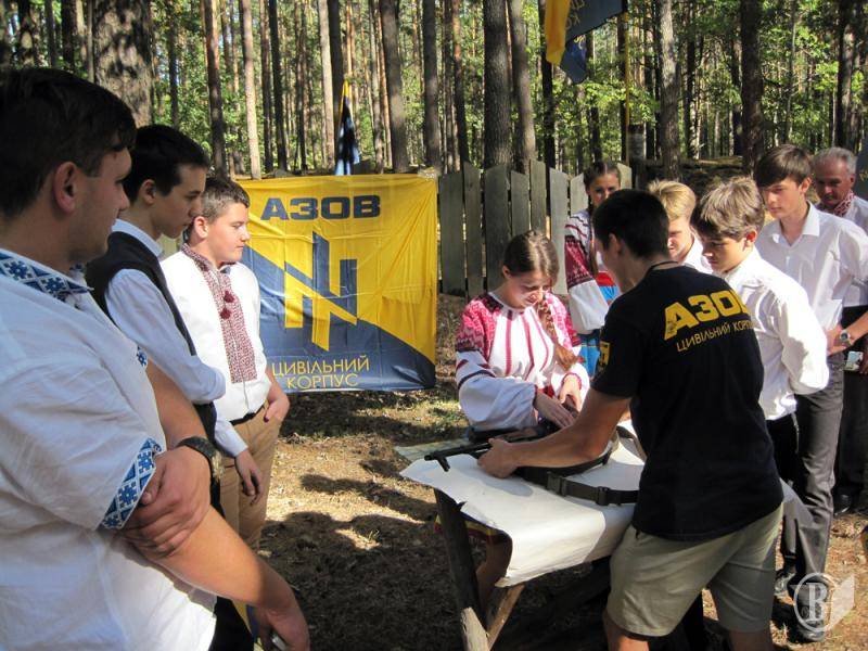 Военно-патриотическую выучку для школьников и всех желающих провели ребята из гражданского корпуса полка “Азов”. В окружении государственной и полковой символики собирали-разбирали автомат и фотографировались на память.