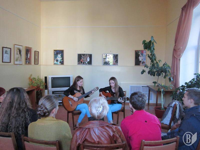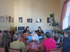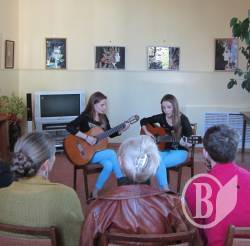 Насичена програма зустрічі не дозволила належним чином пустити гітару "по колу". Тому поспівати встигли тільки двоє: гість із Горностаївки Ріпкинського району, "людина-оркестр" Сергій Хололеєнко та чернігівка Анна Вірясова, яка, попри скромну манеру виконання, чудово показала себе влітку на фестивалі авторської пісні "На Голубих озерах".