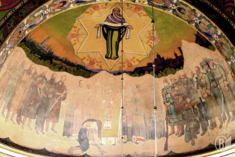 Фреска «Покрова Пресвятой Богородицы» в церкви отцов Василиян в Жовкве на Львовщине. Середина 1930-х, художник, – Юлиян Буцманюк.