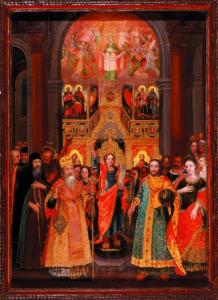 «Покрова Богородицы» с изображениями гетмана Ивана Мазепы, переяславского полковника Ивана Мировича, префекта Киево-Могилянской академии Феофана Прокоповича и русского царя Петра I и его жены Екатерины I. Копия XIX в. из иконы начала XVIII в. Оригинал потерян. Происходит из Покровской церкви или Вознесенского собора в Переяславе-Хмельницком на Киевщине. Размер - 128 х 66 см. Полотно, левкас, масло. Из фондов Национального художественного музея Украины, Киев.