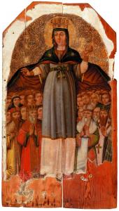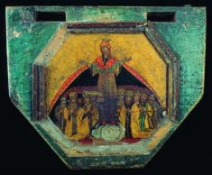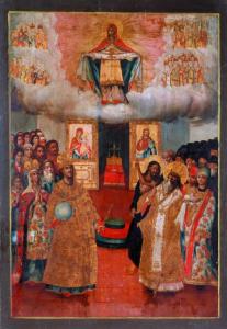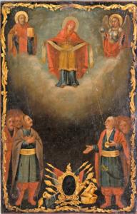 «Покрова Пресвятой Богородицы» - икона из аналоя сечевой Покровской церкви. XVIII в. Дерево, левкас, масло.Из фондов Днепропетровского национального исторического музея им. Д. И. Яворницкого.