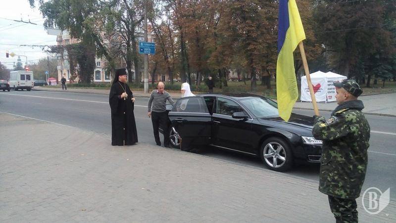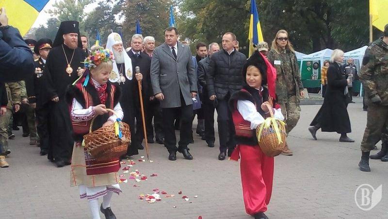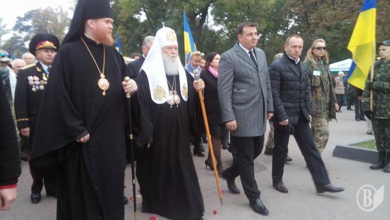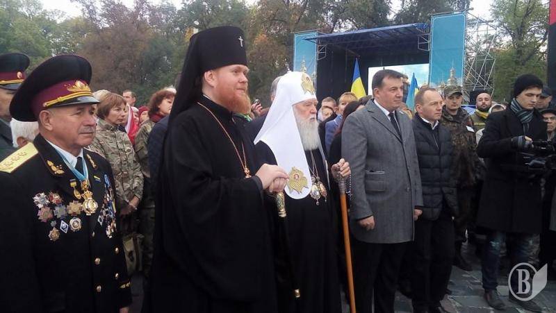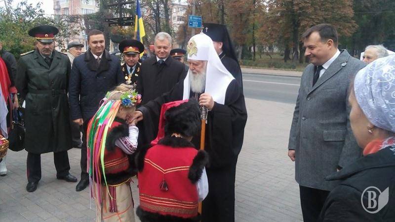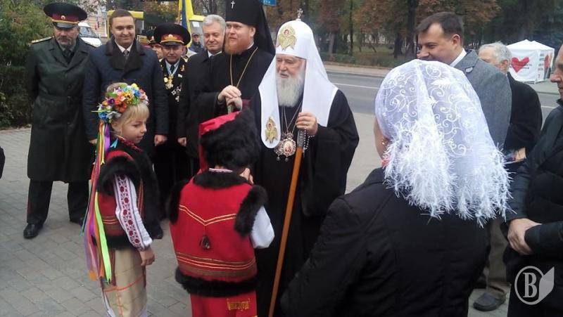Відбулася зустріч Святійшого Патріарха Київського і всієї Руси-України Філарета. Він пройшов центральною алеєю до Катерининської церкви.