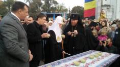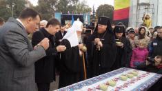 Патриарх Филарет передал колокола военным и освятил кулеш, которым казаки угостили всех гостей.