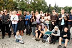 Организаторы, а это студенты-артисты, искренне поблагодарили со сцены всех, кто пришел на встречу, ведь 3-го декабря у Александра день рождения.