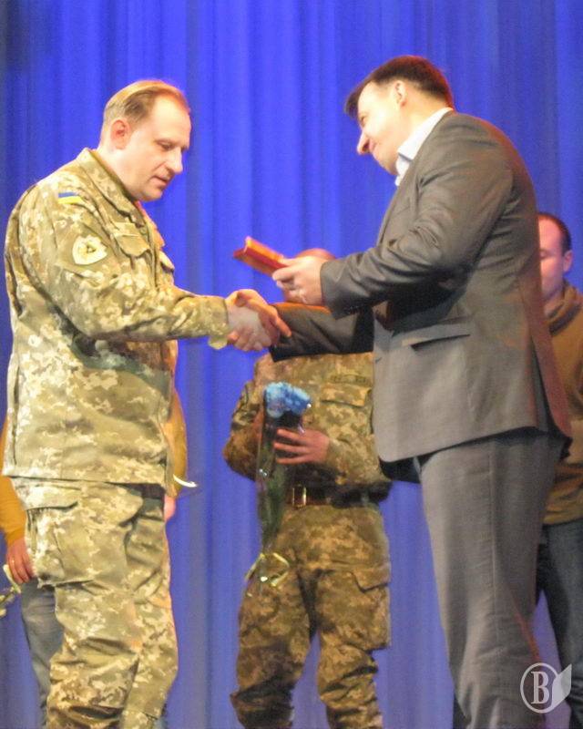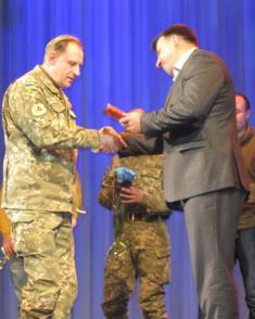 За традицією, що склалася, на початку відбулося нагородження бійців. Від імені Президента бойові медалі шістьом військовослужбовцям 13-го окремого мотопіхотного батальйону вручив голова облдержадміністрації Валерій Куліч. «Для нас велика честь бачити вас, коли ви отримуєте ці нагороди, коли держава і ми цінуємо те, що ви робите», - сказала Марічка Падалка.