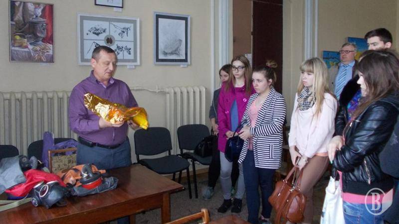 По завершенні методист обласного методкабінету НМЦ ЦЗ та БЖД в доступній формі демонстрував та розповідав про засоби індивідуального захисту органів дихання та шкіри від шкідливих речовин, їх правила застосування та експлуатації. Студенти мали змогу приміряти на себе засоби індивідуального захисту.