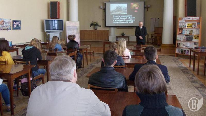Студенти Міжрегіональної Академії управління персоналом завітали 14 квітня у Чернігівську обласну універсальну наукову бібліотеку ім. Короленка, щоб вкотре вшанувати пам’ять загиблих та дізнатися більше про ту страшну ніч, коли сталася трагедія на ЧАЕС.