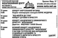 Чернігівський обласний філармонійний центр фестивалів та концертних програм запрошує відвідати 15, 16, 18 і 25 травня наведені нижче заходи.