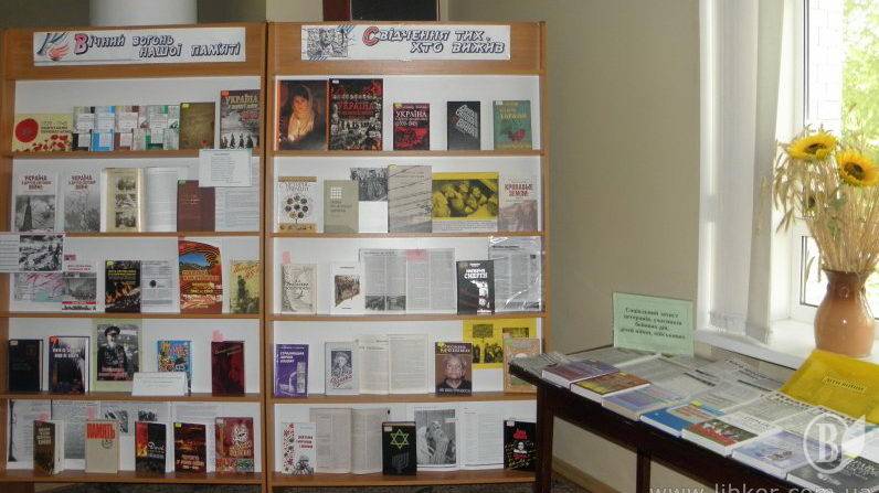 Организаторы мероприятия предложили молодежи посмотреть выставки книг под названиями: "Вечный огонь нашей памяти", "Свидетельство тех, кто выжил" и излагание литературы под названием "Социальная защита ветеранов, участников боевых действий, детей войны, военных". Студенты заинтересовались такими книжками: "Сожженные села и поселки Черниговщины в 1941-1943 годах: преступления против гражданского населения", "Никто не забыт, ничто не забыто" (В. Д. Ольшанский), "Воспоминания-завещание ветеранов", "Бабий Яр" (А. Кузнецов).