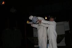 По закінченні майже півгодинної “семихвилинки”, юні й не дуже глядачі фотографувалися з акторами, при декораціях, з яких на них спозирали Малий Сашко, Дід, Бабуся, Лев. Глядачі не впізнавали ляльку Гітлера, чий колега-диктатор у процесі фотоспілкування з глядачами геть було втратив голову. Хтось побачив у цьому знак. Хтось — згадав історію про Сталіна та розенкрейцерів, яких засудили за спробу інвольтації вождя.