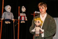 При вході — художній керівник Театру ляльок Віталій Гольцов. Розмовляє із глядачами. До початку вистави лишається двадцять хвилин...