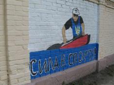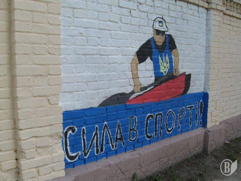 Для того, щоб обрати малюнки, які тепер прикрашають паркан, було проведено обласний конкурс малюнку серед дітей на спортивну тему. До конкурсу приймалися роботи учнів 5-11 класів. Організатори отримали 50 дитячих робіт, серед яких і обрали 8 найкращих.