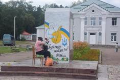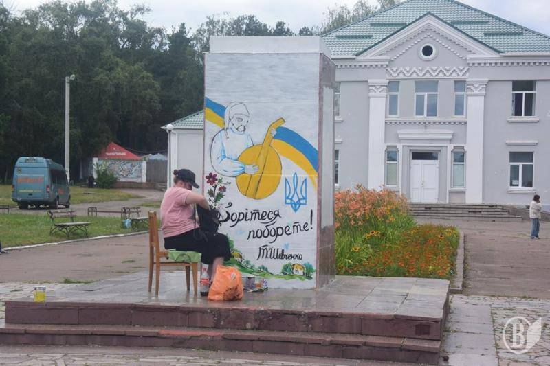 У селищі Ріпки на Чернігівщині естетично розфарбовують постамент з-під люстрованого «вождя пролетаріїв».