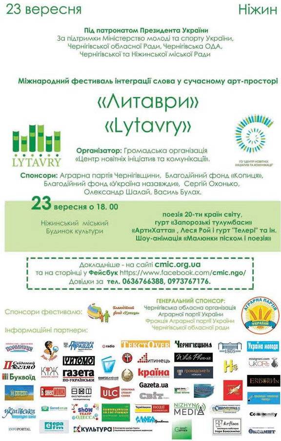 22-24 вересня у Ніжині та Чернігові триватиме Міжнародний фестиваль інтеграції слова «Литаври».