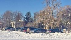 Майданчик біля храму св. вмц Катерини в Чернігові сьогодні перетворився чи то на парковку, чи то на виставку дорогих авто.