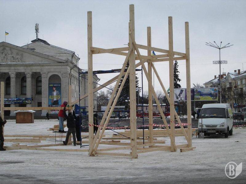 В историческом центре Чернигова, на Красной площади, продолжается установление виселицы.